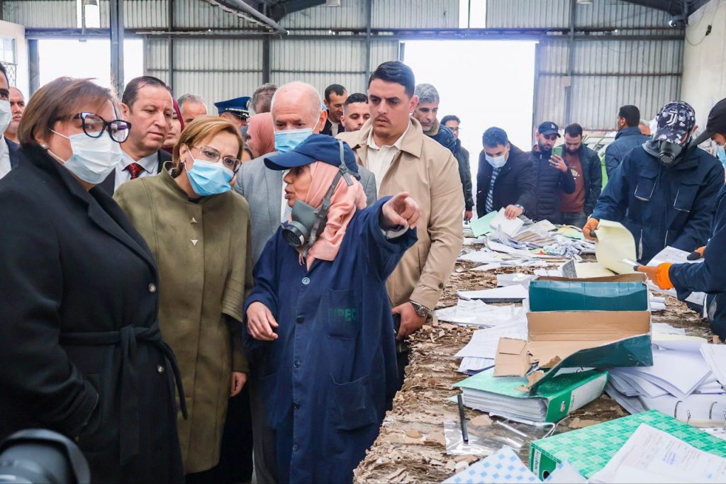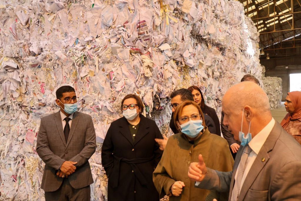 وفي سياق الاطلاع على التجارب الرائدة في مجال الرسكلة، قام الوفد الوزاري بزيارة مؤسسة تجميع ورسكلة الورق بالجزائر العاصمة، حيث تم الوقوف على مختلف مراحل نشاط المؤسسة في مجال جمع وتثمين النفايات الورقية، فضلًا عن دورها في دعم التنمية المستدامة وخلق فرص العمل وتشجيع الاستثمار في قطاع الرسكلة، لاسيما بالنسبة للشباب في إطار تنفيذ المرسوم التنفيذي رقم 61/24 المتعلق بتنظيم نشاط جمع النفايات القابلة للاسترجاع للأشخاص الطبيعيين، وبالتنسيق مع الوكالة الوطنية لتسيير القرض المصغر (ANGEM) بهدف تثمين التكامل بين التكوين والتمويل ودعم مرافقة حاملي المشاريع البيئية