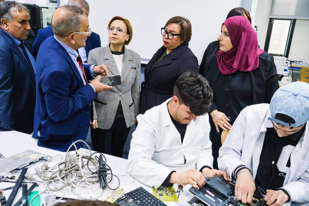 في إطار التنسيق القطاعي بين وزارتي البيئة وجودة الحياة والتكوين والتعليم المهنيين لترقية المهن البيئية، أشرفت وزيرة البيئة وجودة الحياة، السيدة كوثر كريكو، اليوم الخميس 15 جانفي 2026، رفقة وزيرة التكوين والتعليم المهنيين، السيدة أرحاب نسيمة، خلال زيارة ميدانية إلى المعهد الوطني المتخصص في التكوين المهني رابح سباعات ببلدية الرويبة، على توقيع بروتوكول اتفاق بين القطاعين حول إدراج تخصصات بيئية جديدة في مجال التكوين والتعليم المهنيين، يهدف إلى إدماج البعد البيئي في البرامج البيداغوجية وتكييفها مع متطلبات سوق العمل والرهانات البيئية الآنية، لا سيما مرافقة الشباب خريجي مؤسسات التكوين الحاملين لأفكار ومشاريع مبتكرة في مجال المقاولاتية البيئية، بما يعزز التوجه نحو المهن الخضراء والاقتصاد الدائري.