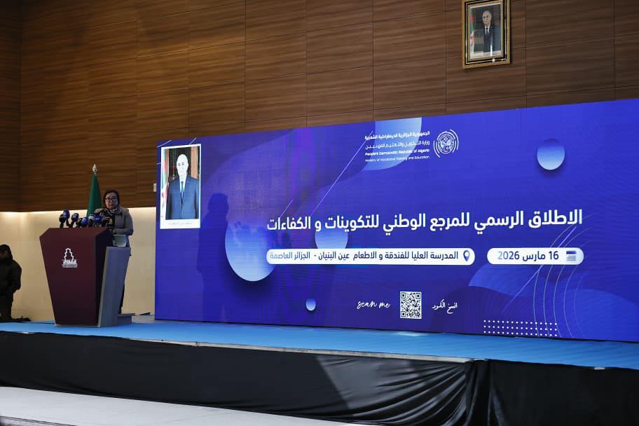 بدعوة كريمة من وزيرة التكوين والتعليم المهنيين السيدة #نسيمة_ارحاب، شاركت اليوم الاثنين 16 مارس 2026، وزيرة البيئة وجودة الحياة، السيدة #كوثر_كريكو في مراسم الإطلاق الرسمي لمشروع المرجع الوطني للتكوينات والكفاءات، بالمدرسة العليا للفندقة والإطعام الجزائر العاصمة.