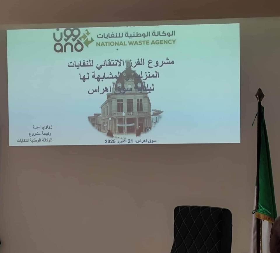 في إطار الجهود الوطنية الرامية إلى ترقية فرز النفايات من المصدر وتعزيز التسيير المستدام للنفايات المنزلية، احتضنت مديرية البيئة لولاية سوق أهراس اجتماعاً خُصّص لعرض نتائج دراسة توطين مشروع #الفرز_الانتقائي_للنفايات المنزلية عبر مختلف بلديات الولاية.
