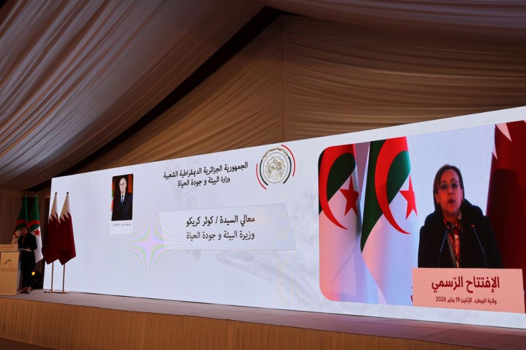 أشرفت اليوم الاثنين 19 جانفي 2026 #بولاية_البيض، السيدة #كوثر_كريكو، وزيرة البيئة وجودة الحياة، رفقة سعادة السيد عبد الله بن عبد العزيز بن تركي السبيعي، #وزير_البيئة_والتغير_المناخي لدولة قطر، وبحضور السيد #والي_ولاية_البيض، والسيد المدير العام لمحافظة الغابات، والسلطات المحلية، على الافتتاح الرسمي للمركز القطري لتكاثر #طيور_الحبارى.