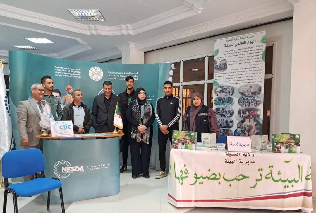 شاركت مديرية البيئة لولاية المسيلة هذا الخميس في فعاليات الأسبوع العالمي للمقولاتية، بجامعة محمد بوضياف بالمسيلة، من خلال تنظيم معرض بيئي. وجاء هذا المعرض بهدف التعريف بالاقتصاد الأخضر وأهميته، وتحفيز الطلبة وأصحاب الأفكار على المبادرة وتأسيس مؤسسات ناشئة تندرج ضمن مجالات الاقتصاد الاخضر والتنمية المستدامة.