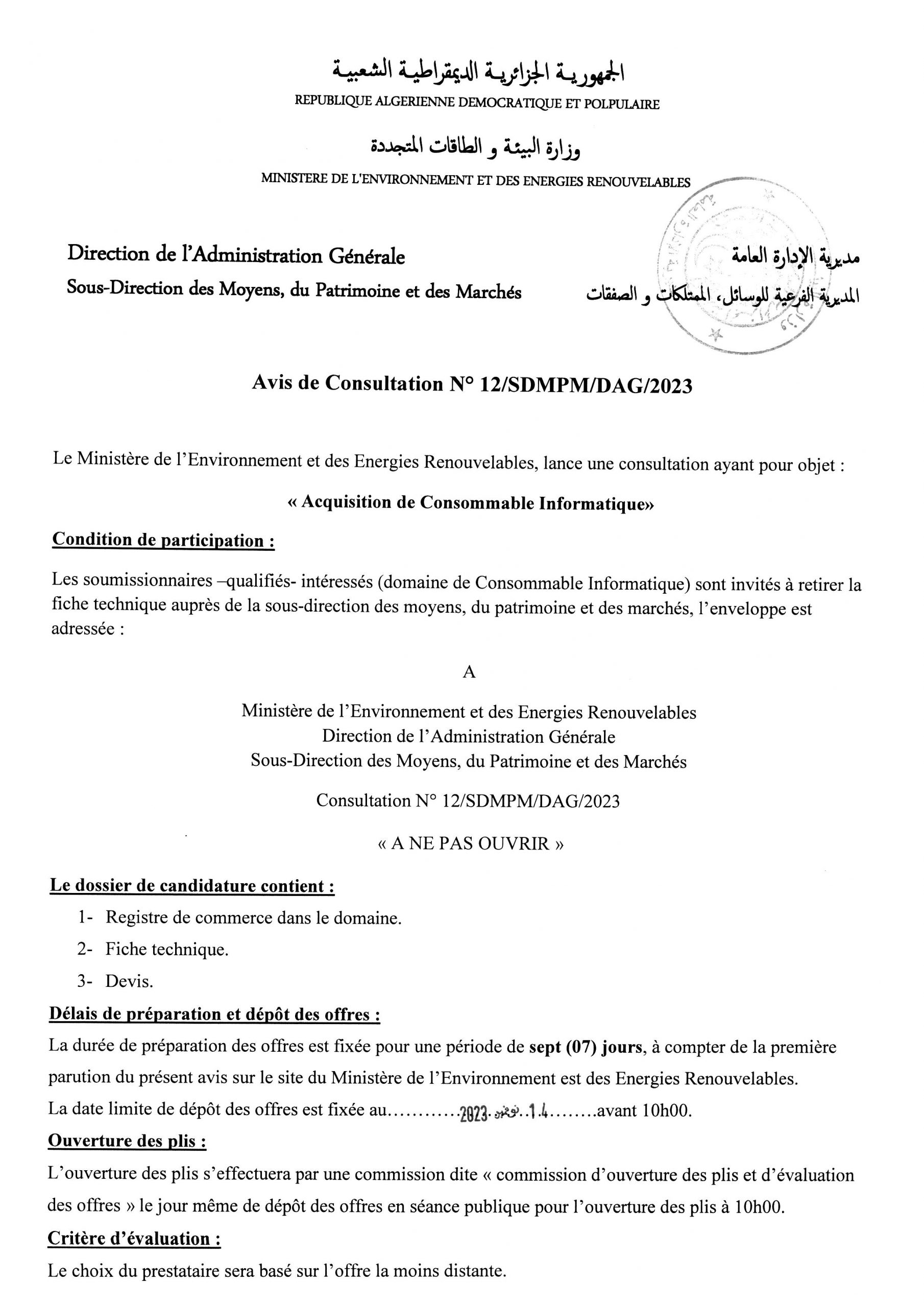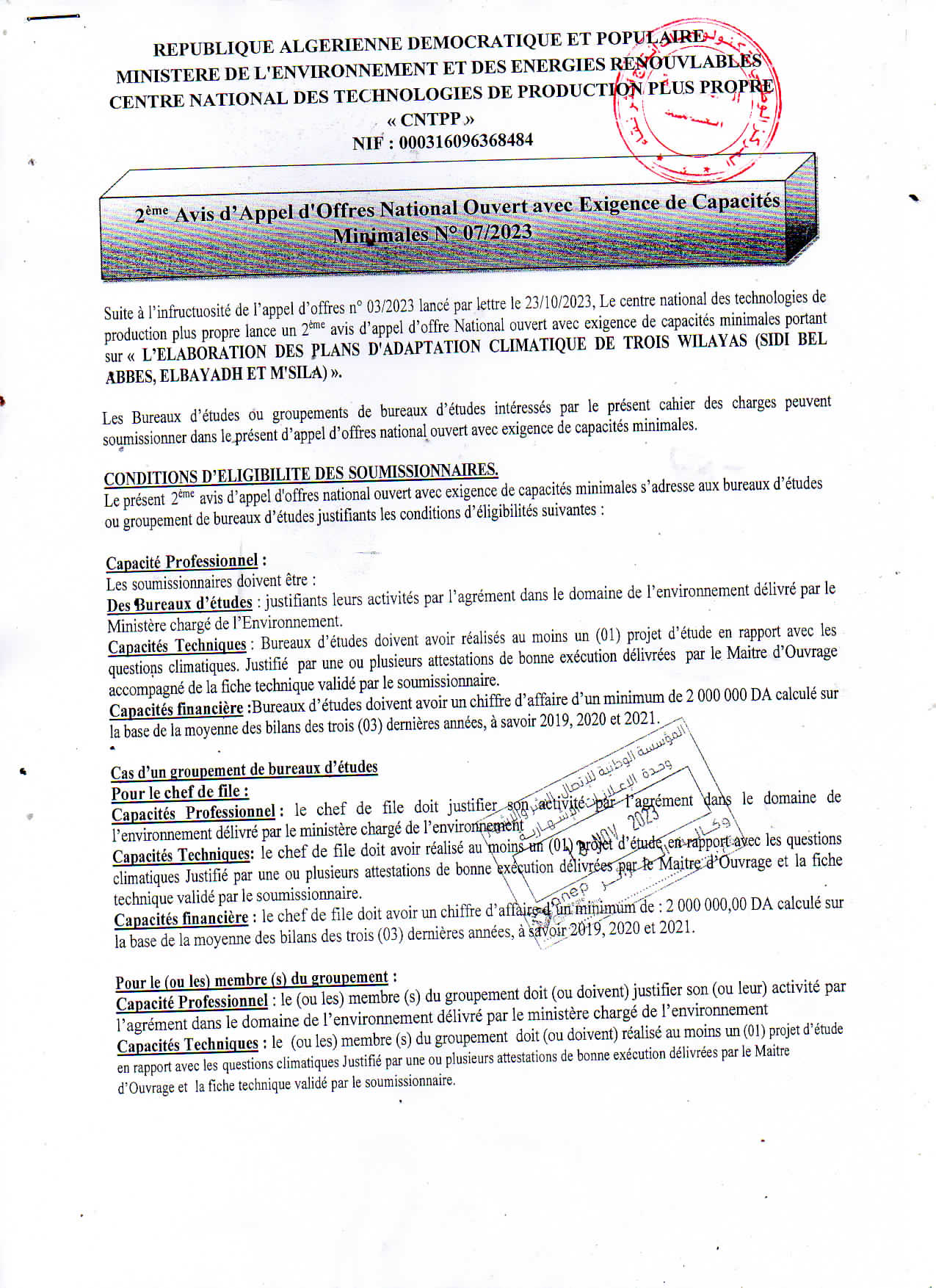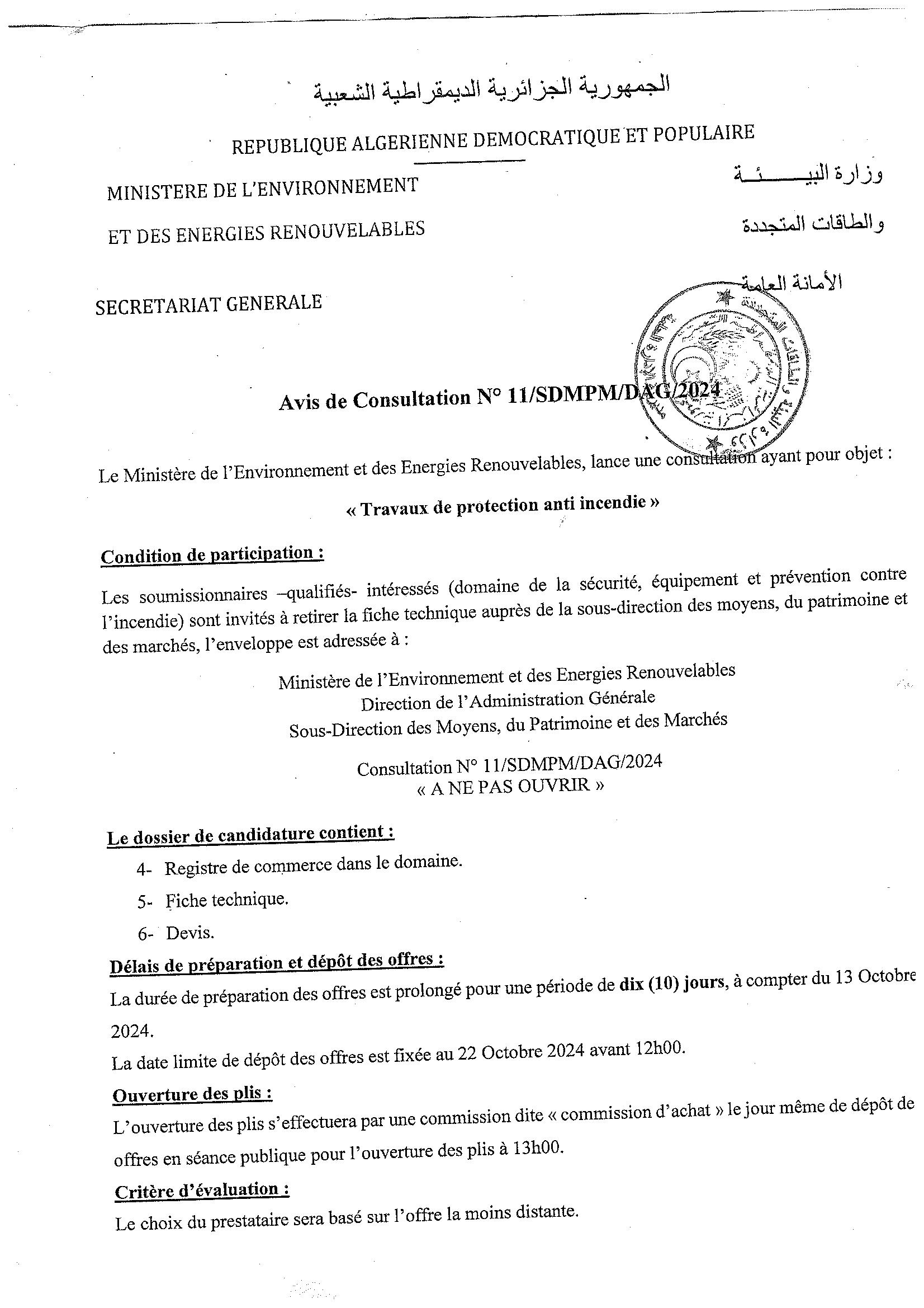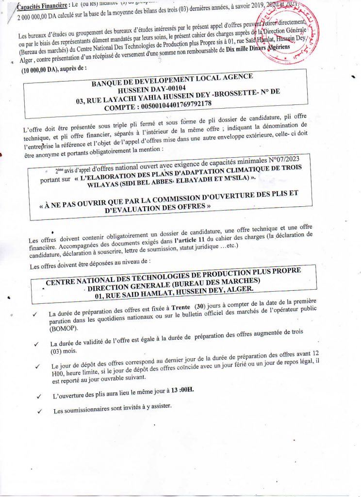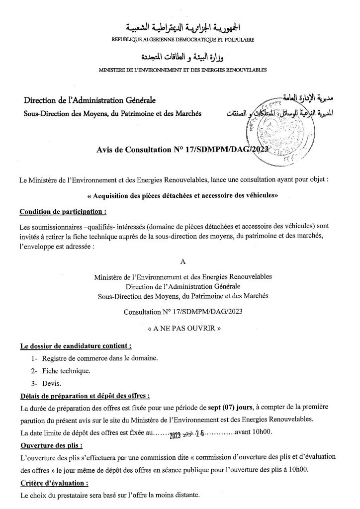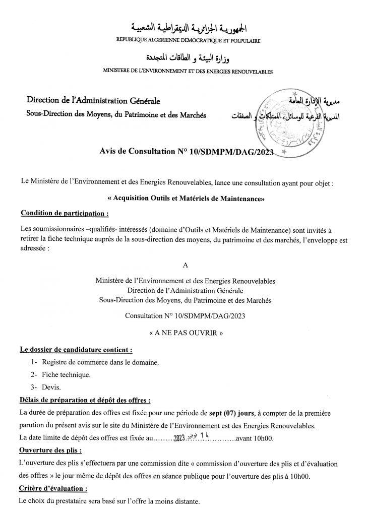 Avis de prolongation de l’appel d’offres national ouvert avec exigences de capacités minimales pour » l’Electrification de sites isolés par {micro-réseau} la fourniture, l’installation et la mise en service d’une microcentrale solaire photovoltaïque, au profit du village d’Ifni, de la wilaya d’Illizi«