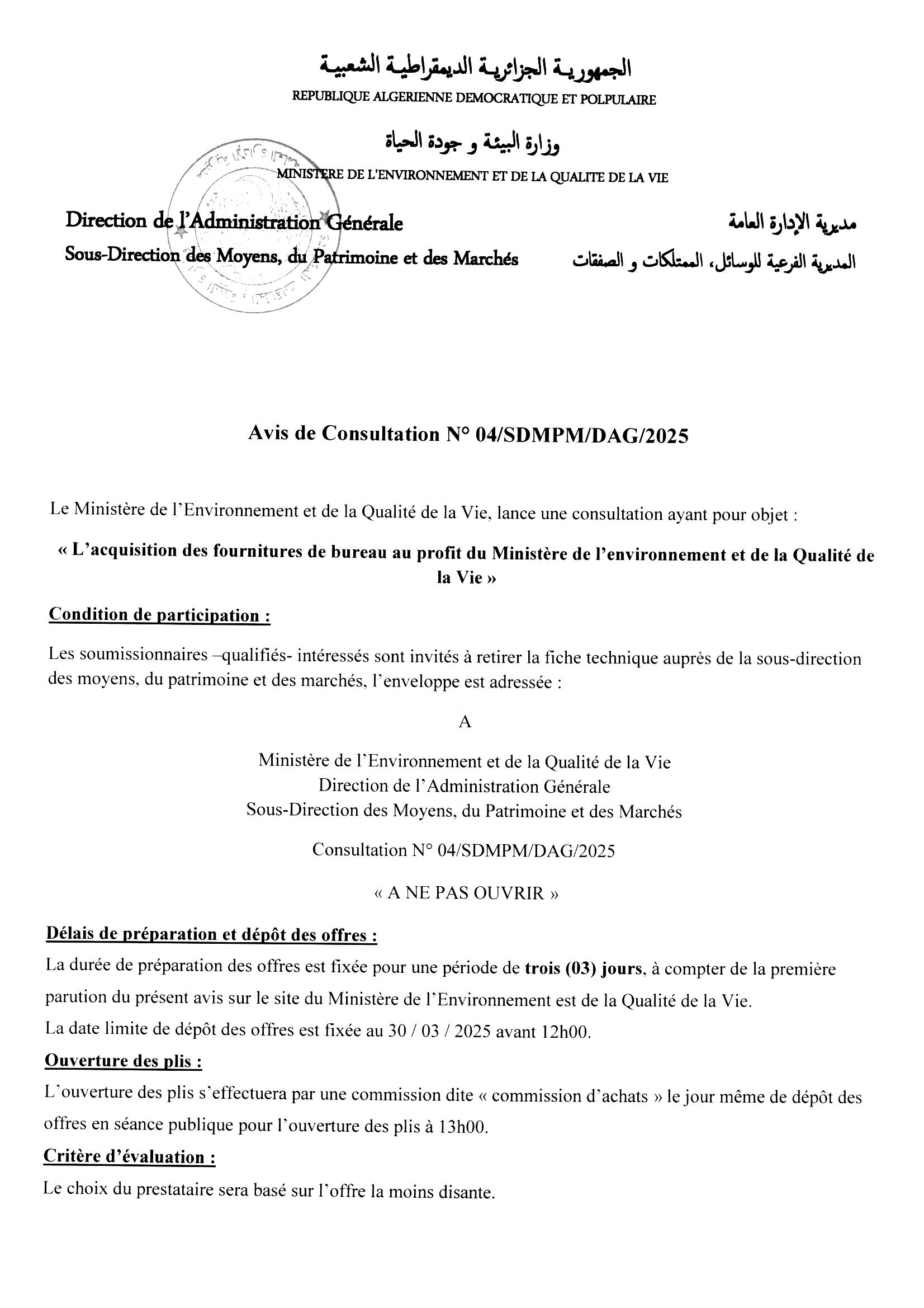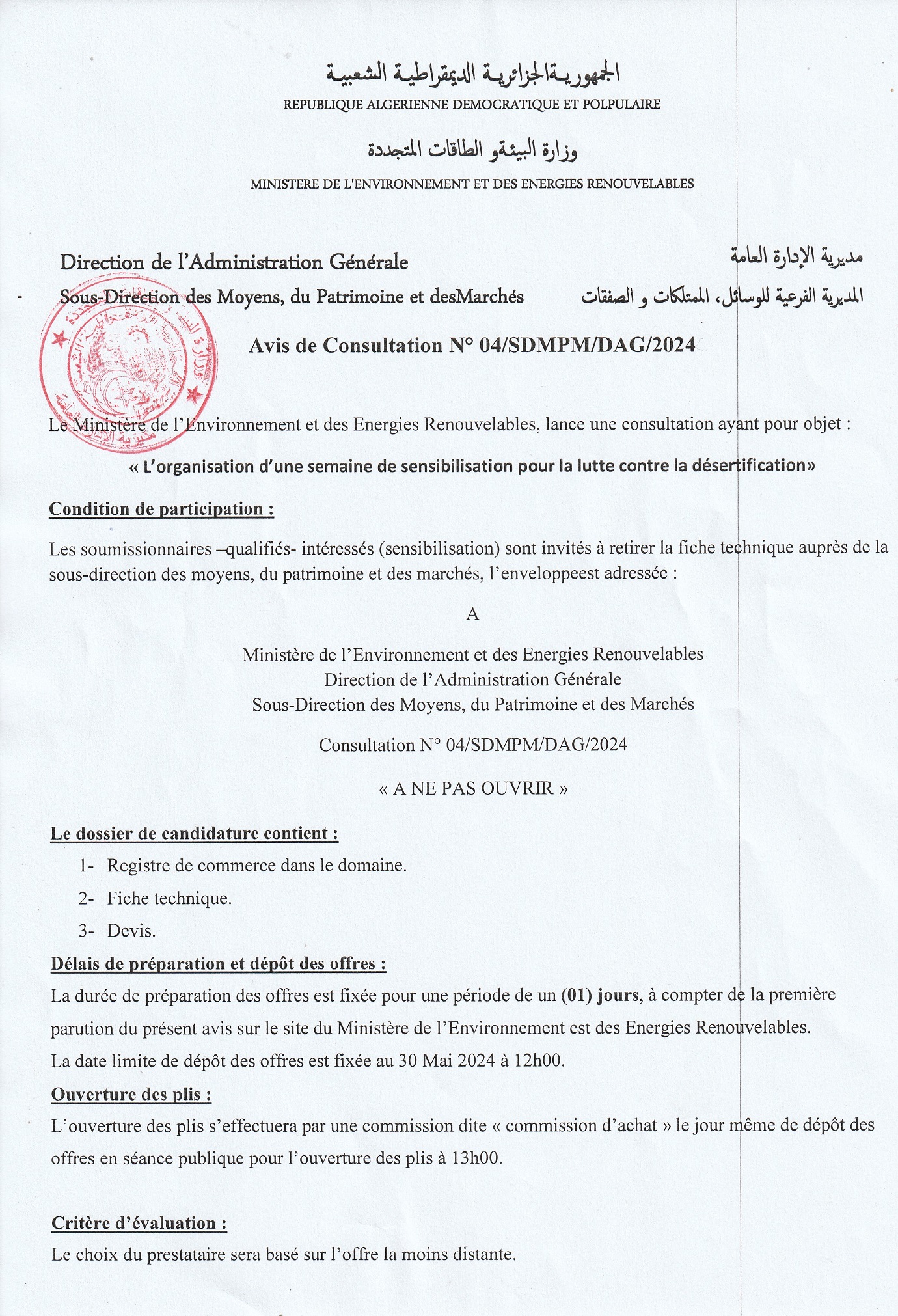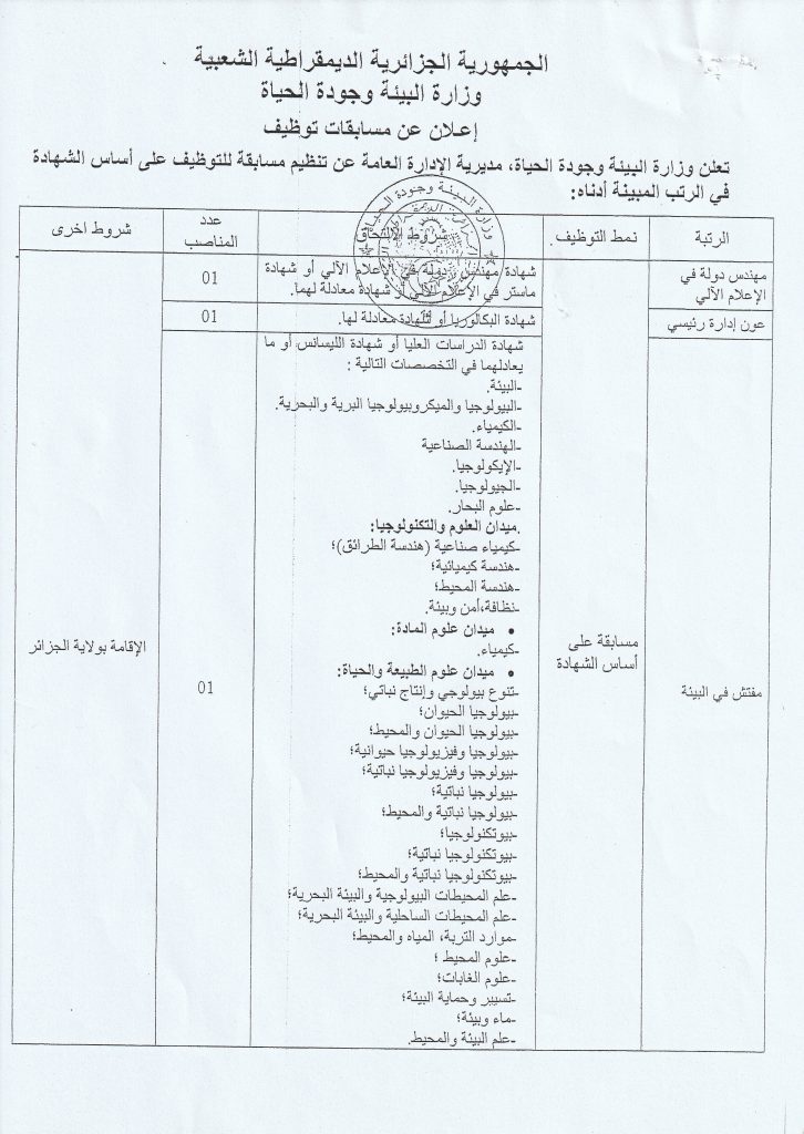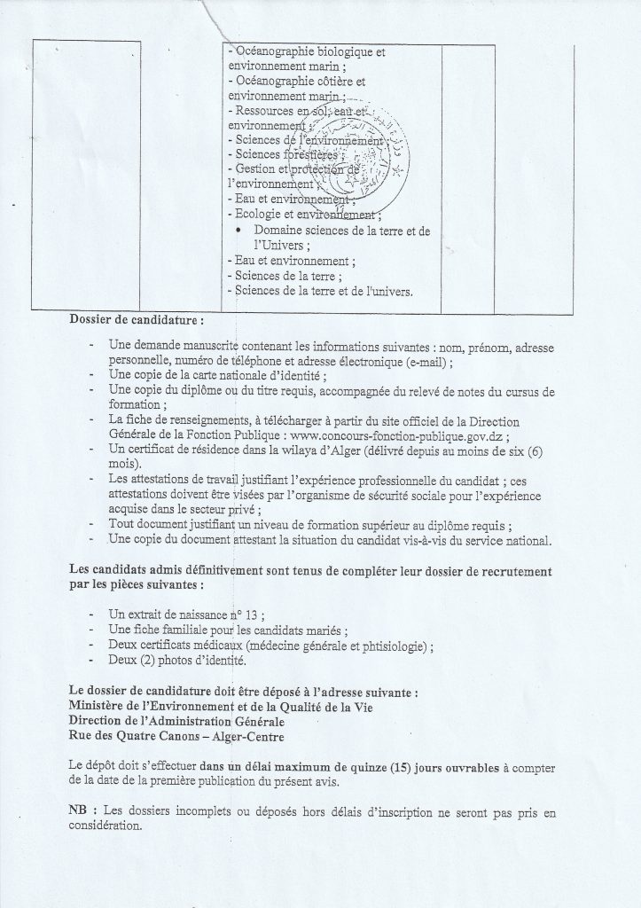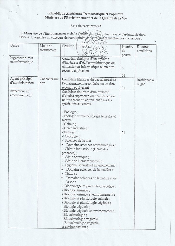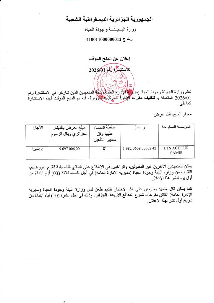 Direction de l’Environnement de Djelfa N°04/2024